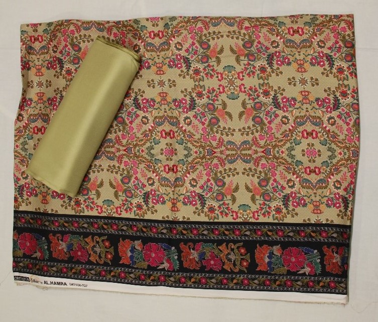 Unstitched 3pcs Kameez shalwar same design Disclaimer: The colour may vary from the image because of the lighting.